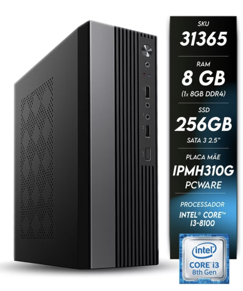O Computador NTC Compact Intel - 1114 PW, vem equipado com processador Intel Core i3 8100 de 8ª Geração com 4 Núcleos e 4 Threads de 3.60Ghz, Placa Mãe Pcware IPMH310G 2.0, 8GB de Memória RAM DDR4 3000 Mhz (1x8GB), SSD Sata 2.5 de 256GB, Gabinete Slim Micro ATX GM-02CK com apenas 7.7L, Fonte de alimentação Flex de 200W