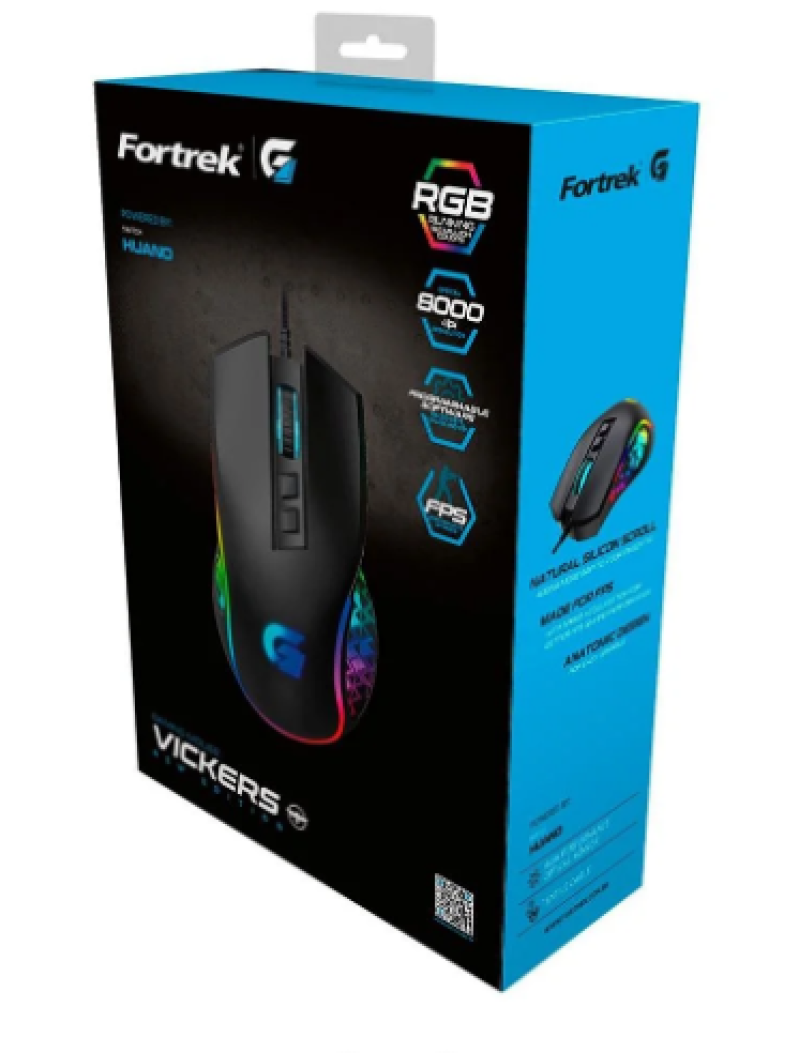 O Mouse Gamer Fortrek Vickers New Edition foi construído e pensado nos mínimos detalhes, possuindo design diferenciado, ergonômico e estiloso. Este mouse é o que falta para deixar o seu setup gamer com uma performance excepcional. Composto por Switch Huano, resolução ajustável e um tempo de resposta de 8 milissegundos, proporcionará uma ótima jogabilidade.
